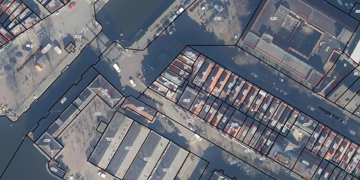 Laagte Kadijk 2-B is gelegen op kadastraal perceel ASD11O3582. Deze kadastrale aanduiding is uniek en wordt gebruikt door het Kadaster om eigendomsrechten en andere zakelijke rechten vast te leggen. Het perceel maakt onderdeel uit van de kadastrale gemeente Amsterdam.
