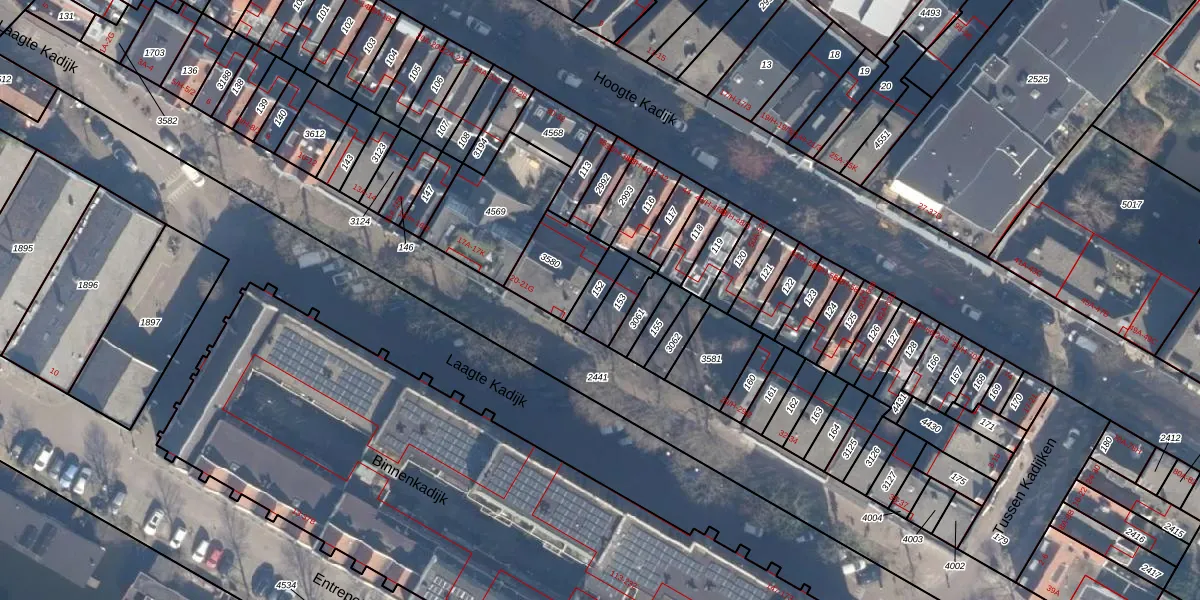 Het perceel waarop Laagte Kadijk 21-C staat heeft een oppervlakte van 53 m². Dit is een klein perceel. De perceeloppervlakte wordt geregistreerd door het Kadaster. Gedetailleerde informatie over de maten van dit perceel kunt u vinden in het rapport Kadastrale kaart met maatvoering van Laagte Kadijk 21-C.