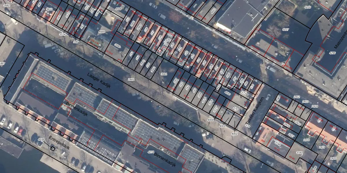 Het adres is gelegen op perceel 160 in de sectie O en de kadastrale gemeente Amsterdam. De kadastrale aanduiding is aldus ASD11-O-160. De gemiddelde perceelgrootte in Amsterdam is 781,11 m². Dit perceel is kleiner: de perceeloppervlakte bedraagt 60 m². Het kleinste perceel in de kadastrale gemeente is 1 m² groot. De grootste perceeloppervlakte is 12,0 ha. Op het perceel zijn 3 adressen aanwezig. De huidige grenzen van het perceel zijn digitaal in de Basisregistratie Kadaster (BRK) geregistreerd op 17-11-2006.