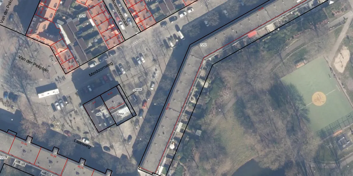 Laanweg 100 is gelegen op kadastraal perceel ASD07K7251. Deze kadastrale aanduiding is uniek en wordt gebruikt door het Kadaster om eigendomsrechten en andere zakelijke rechten vast te leggen. Het perceel maakt onderdeel uit van de kadastrale gemeente Amsterdam.