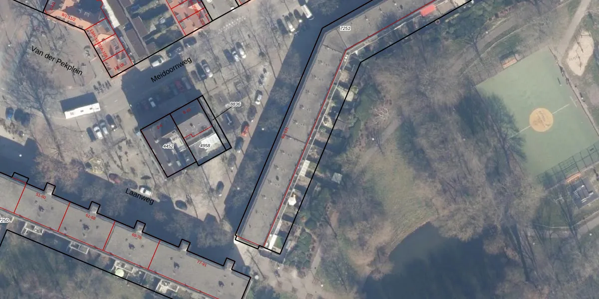 Laanweg 114 is gelegen op kadastraal perceel ASD07K7251. Deze kadastrale aanduiding is uniek en wordt gebruikt door het Kadaster om eigendomsrechten en andere zakelijke rechten vast te leggen. Het perceel maakt onderdeel uit van de kadastrale gemeente Amsterdam.