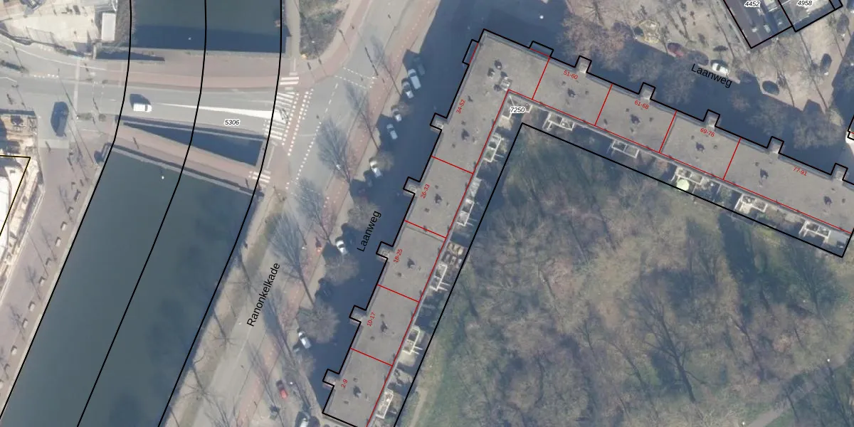 Laanweg 31 is gelegen op kadastraal perceel ASD07K7250. Deze kadastrale aanduiding is uniek en wordt gebruikt door het Kadaster om eigendomsrechten en andere zakelijke rechten vast te leggen. Het perceel maakt onderdeel uit van de kadastrale gemeente Amsterdam.