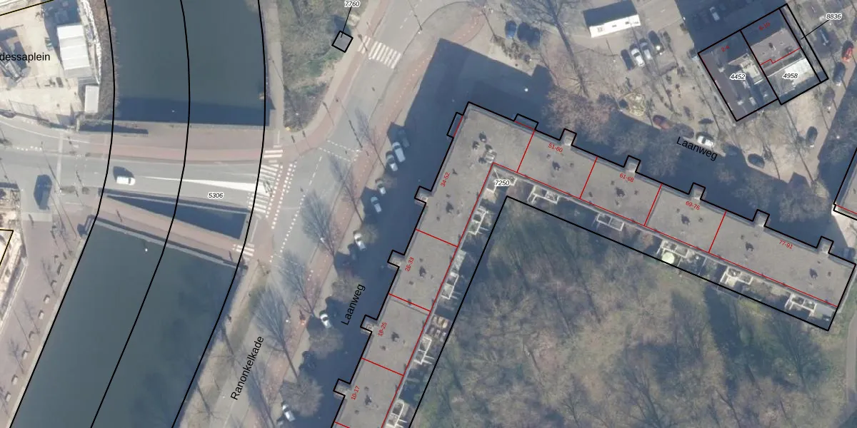 Laanweg 37 is gelegen op kadastraal perceel ASD07K7250. Deze kadastrale aanduiding is uniek en wordt gebruikt door het Kadaster om eigendomsrechten en andere zakelijke rechten vast te leggen. Het perceel maakt onderdeel uit van de kadastrale gemeente Amsterdam.