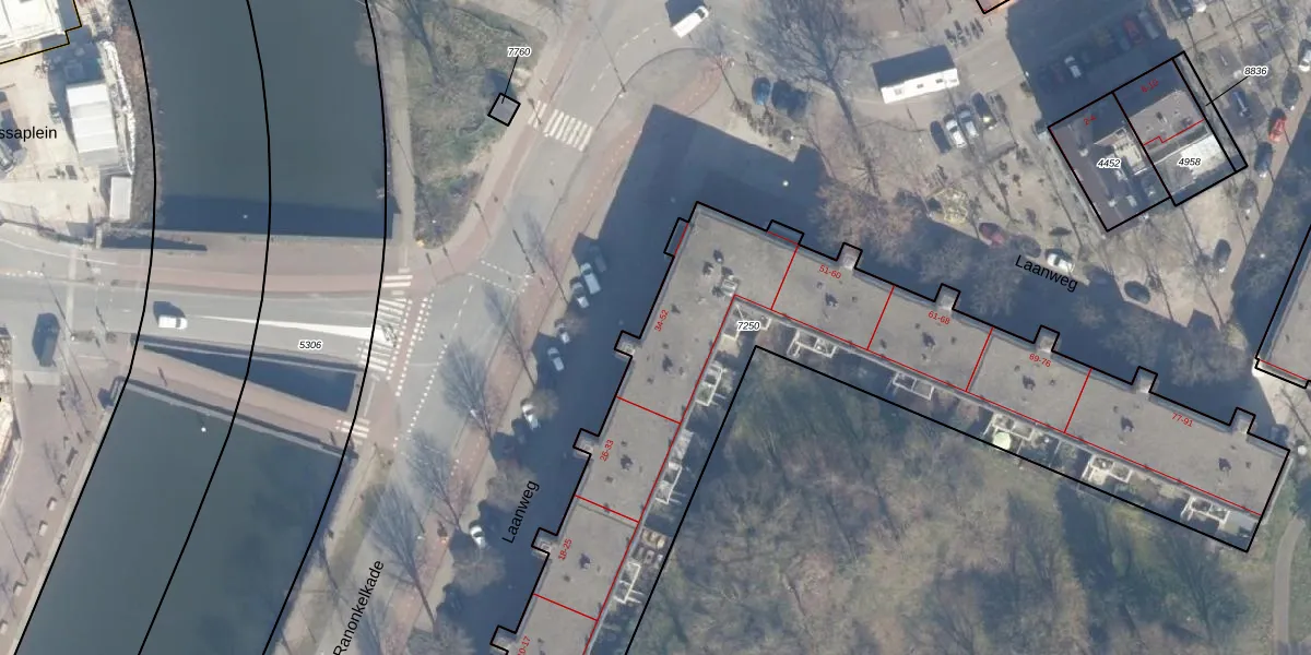 Laanweg 41 is gelegen op kadastraal perceel ASD07K7250. Deze kadastrale aanduiding is uniek en wordt gebruikt door het Kadaster om eigendomsrechten en andere zakelijke rechten vast te leggen. Het perceel maakt onderdeel uit van de kadastrale gemeente Amsterdam.