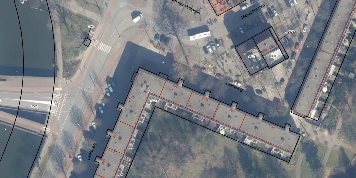 Laanweg 54 is gelegen op kadastraal perceel ASD07K7250. Deze kadastrale aanduiding is uniek en wordt gebruikt door het Kadaster om eigendomsrechten en andere zakelijke rechten vast te leggen. Het perceel maakt onderdeel uit van de kadastrale gemeente Amsterdam.