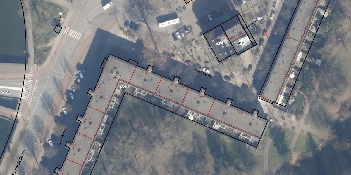Laanweg 63 is gelegen op kadastraal perceel ASD07K7250. Deze kadastrale aanduiding is uniek en wordt gebruikt door het Kadaster om eigendomsrechten en andere zakelijke rechten vast te leggen. Het perceel maakt onderdeel uit van de kadastrale gemeente Amsterdam.