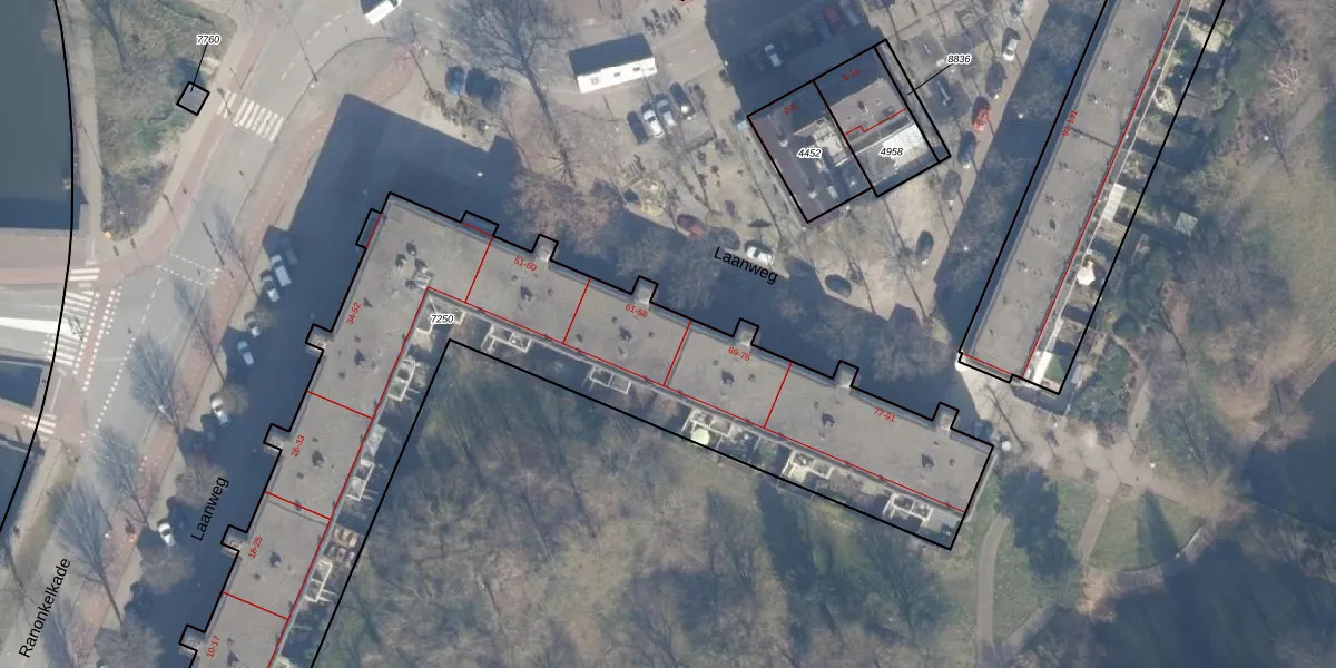 Laanweg 65 is gelegen op kadastraal perceel ASD07K7250. Deze kadastrale aanduiding is uniek en wordt gebruikt door het Kadaster om eigendomsrechten en andere zakelijke rechten vast te leggen. Het perceel maakt onderdeel uit van de kadastrale gemeente Amsterdam.