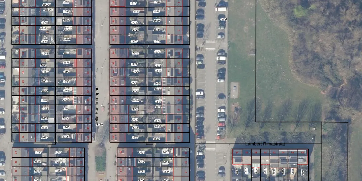 Gebruik de zoekbalk of klik op een perceel voor informatie over de adressen binnen dit perceel.