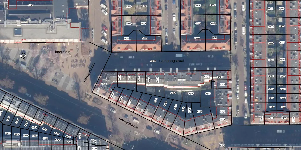 Het perceel waarop Lampongstraat 8-2 staat heeft een oppervlakte van 95 m². Dit is een klein perceel. De perceeloppervlakte wordt geregistreerd door het Kadaster. Gedetailleerde informatie over de maten van dit perceel kunt u vinden in het rapport Kadastrale kaart met maatvoering van Lampongstraat 8-2.