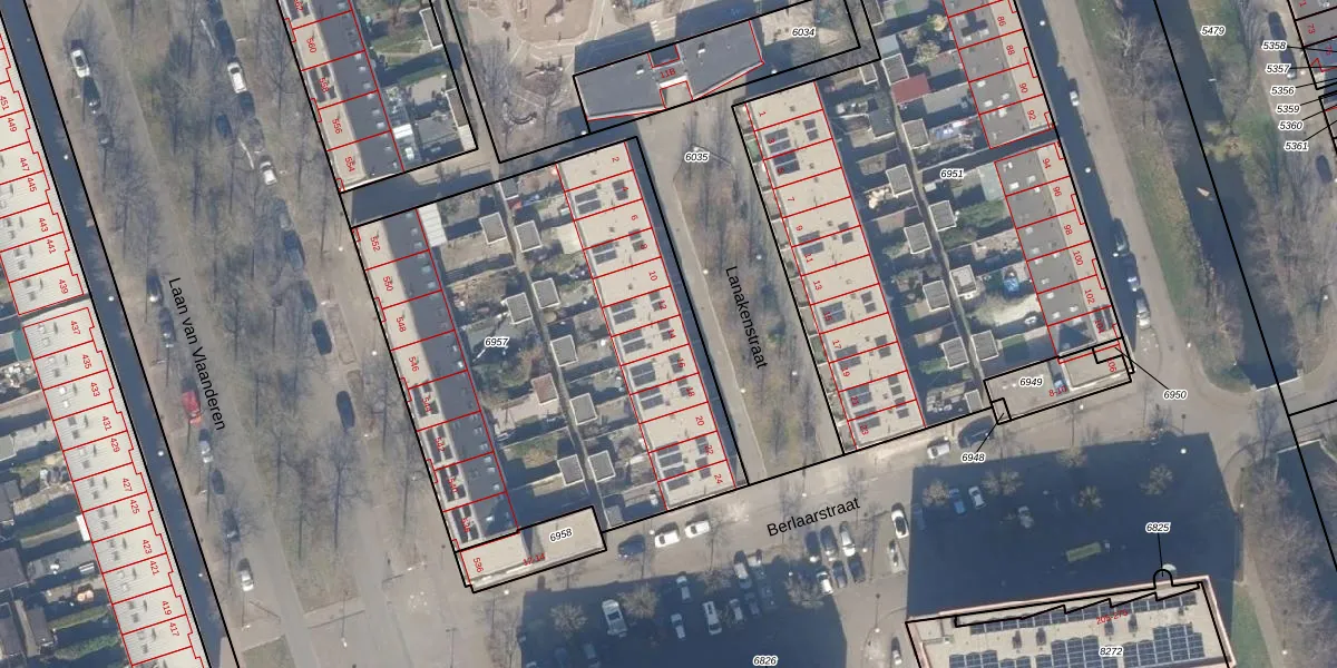 Het perceel waarop Lanakenstraat 14 staat heeft een oppervlakte van 2379 m². Dit is een zeer groot perceel. De perceeloppervlakte wordt geregistreerd door het Kadaster. Gedetailleerde informatie over de maten van dit perceel kunt u vinden in het rapport Kadastrale kaart met maatvoering van Lanakenstraat 14.
