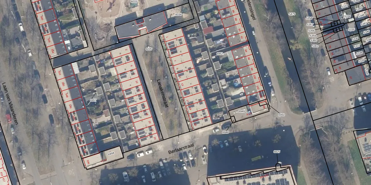 Het perceel waarop Lanakenstraat 15 staat heeft een oppervlakte van 3606 m². Dit is een zeer groot perceel. De perceeloppervlakte wordt geregistreerd door het Kadaster. Gedetailleerde informatie over de maten van dit perceel kunt u vinden in het rapport Kadastrale kaart met maatvoering van Lanakenstraat 15.