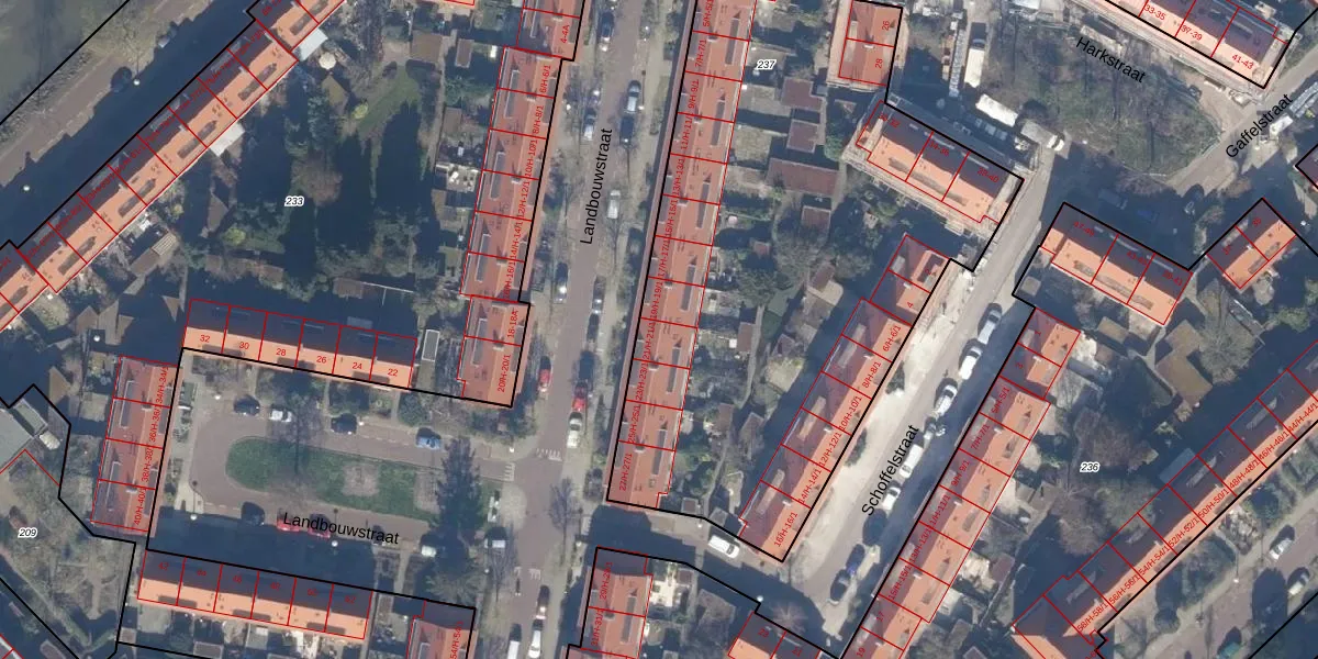 Landbouwstraat 21-H is gelegen op kadastraal perceel WTG02C237. Deze kadastrale aanduiding is uniek en wordt gebruikt door het Kadaster om eigendomsrechten en andere zakelijke rechten vast te leggen. Het perceel maakt onderdeel uit van de kadastrale gemeente Watergraafsmeer.
