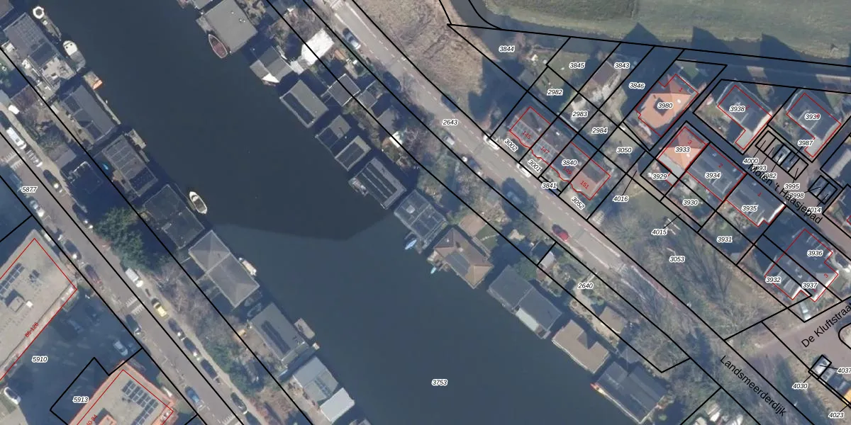 Landsmeerderdijk 100 is gelegen op kadastraal perceel ASD35AP3753. Deze kadastrale aanduiding is uniek en wordt gebruikt door het Kadaster om eigendomsrechten en andere zakelijke rechten vast te leggen. Het perceel maakt onderdeel uit van de kadastrale gemeente Amsterdam.
