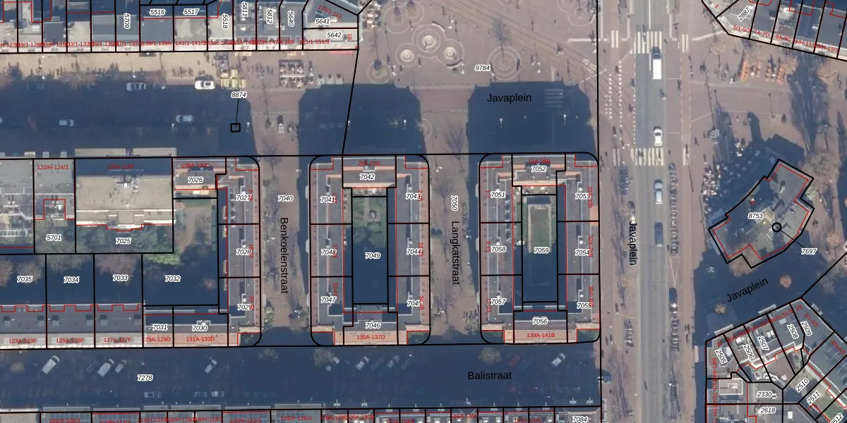 Het adres ligt op het perceel ASD15-S-7043, dat zich in de kadastrale gemeente Amsterdam bevindt. Het perceel is kleiner dan gemiddeld in Amsterdam. Het perceel is 140 m² groot, terwijl het gemiddelde ligt op 537,06 m². De grootste perceeloppervlakte in de kadastrale gemeente is 14,5 ha. De kleinste oppervlakte bedraagt 0 m². Op het perceel zijn 8 adressen aanwezig. In de Basisregistratie Kadaster (BRK) werden de grenzen van het perceel geregistreerd op 28-08-2009.