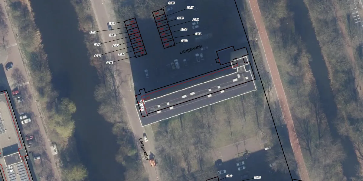 Het perceel waarop Langswater 144 staat heeft een oppervlakte van 885 m². Dit is een groot perceel. De perceeloppervlakte wordt geregistreerd door het Kadaster. Gedetailleerde informatie over de maten van dit perceel kunt u vinden in het rapport Kadastrale kaart met maatvoering van Langswater 144.