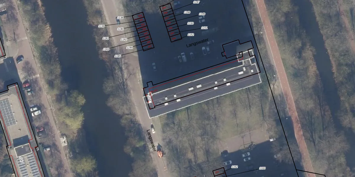 Het perceel waarop Langswater 159 staat heeft een oppervlakte van 885 m². Dit is een groot perceel. De perceeloppervlakte wordt geregistreerd door het Kadaster. Gedetailleerde informatie over de maten van dit perceel kunt u vinden in het rapport Kadastrale kaart met maatvoering van Langswater 159.