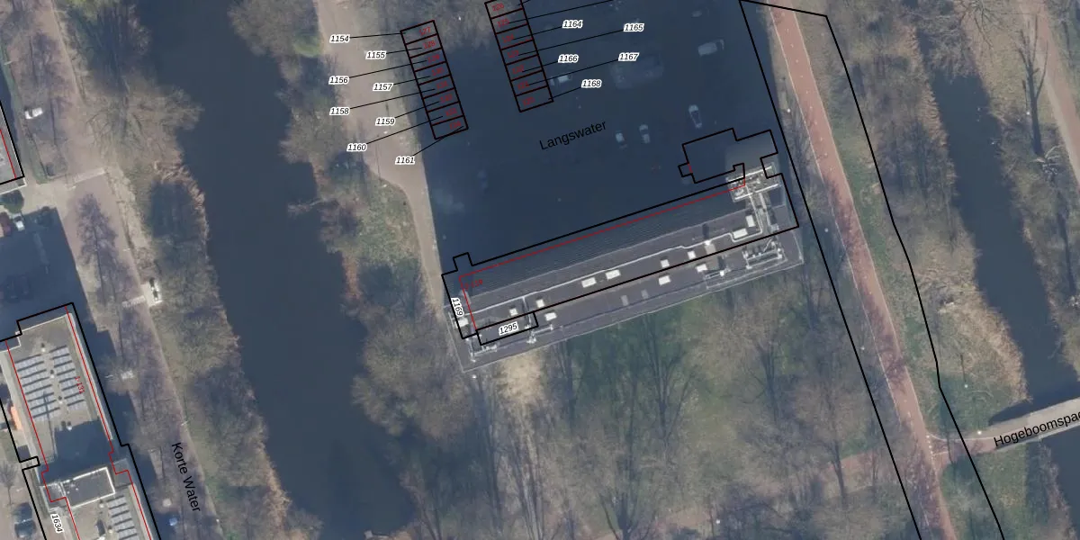 Het perceel waarop Langswater 24 staat heeft een oppervlakte van 885 m². Dit is een groot perceel. De perceeloppervlakte wordt geregistreerd door het Kadaster. Gedetailleerde informatie over de maten van dit perceel kunt u vinden in het rapport Kadastrale kaart met maatvoering van Langswater 24.