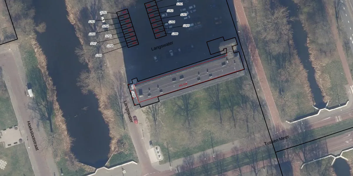 Het perceel waarop Langswater 402 staat heeft een oppervlakte van 916 m². Dit is een groot perceel. De perceeloppervlakte wordt geregistreerd door het Kadaster. Gedetailleerde informatie over de maten van dit perceel kunt u vinden in het rapport Kadastrale kaart met maatvoering van Langswater 402.