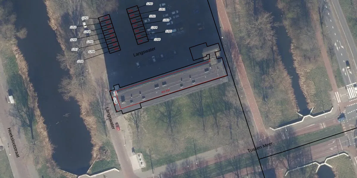 Het perceel waarop Langswater 414 staat heeft een oppervlakte van 916 m². Dit is een groot perceel. De perceeloppervlakte wordt geregistreerd door het Kadaster. Gedetailleerde informatie over de maten van dit perceel kunt u vinden in het rapport Kadastrale kaart met maatvoering van Langswater 414.