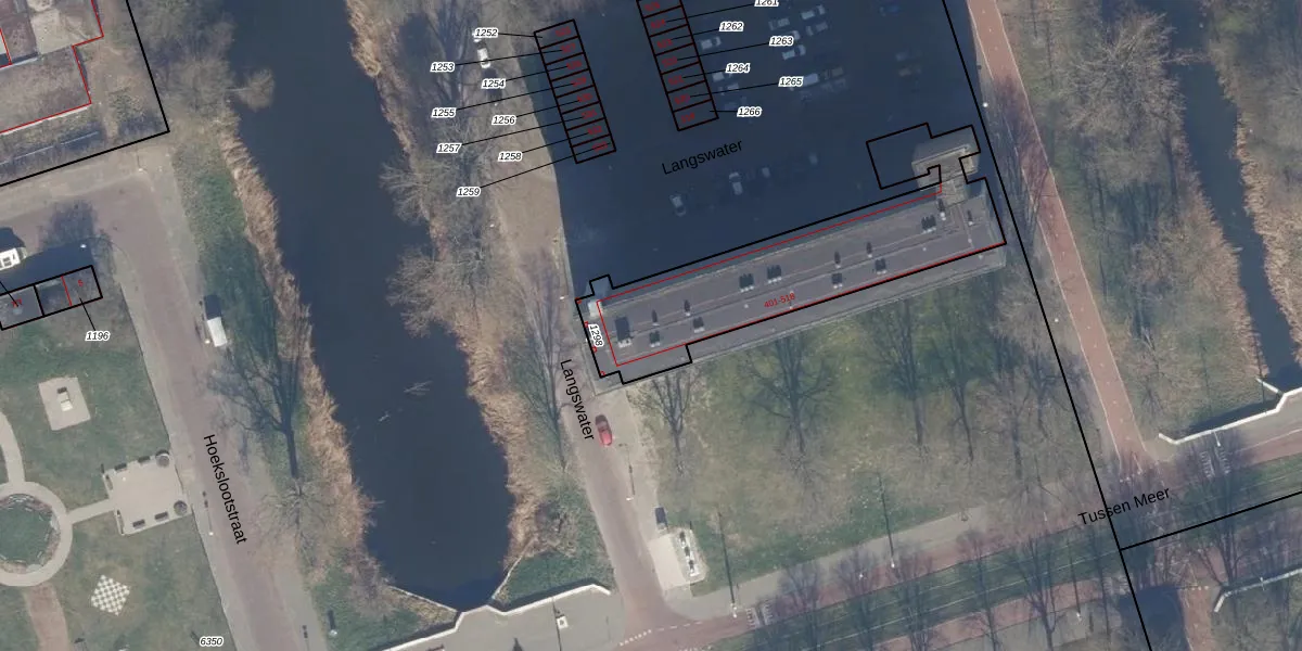 Het perceel waarop Langswater 422 staat heeft een oppervlakte van 916 m². Dit is een groot perceel. De perceeloppervlakte wordt geregistreerd door het Kadaster. Gedetailleerde informatie over de maten van dit perceel kunt u vinden in het rapport Kadastrale kaart met maatvoering van Langswater 422.