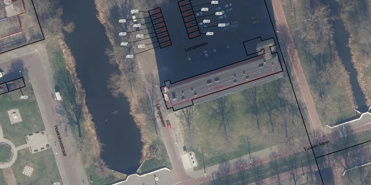 Het perceel waarop Langswater 427 staat heeft een oppervlakte van 916 m². Dit is een groot perceel. De perceeloppervlakte wordt geregistreerd door het Kadaster. Gedetailleerde informatie over de maten van dit perceel kunt u vinden in het rapport Kadastrale kaart met maatvoering van Langswater 427.