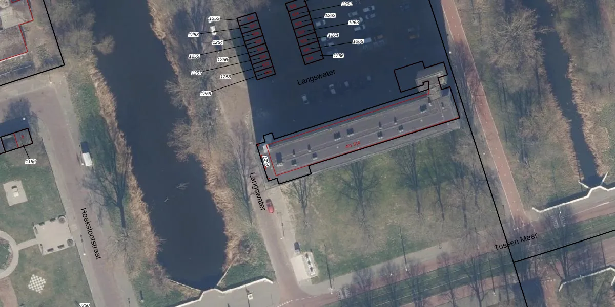 Het perceel waarop Langswater 431 staat heeft een oppervlakte van 916 m². Dit is een groot perceel. De perceeloppervlakte wordt geregistreerd door het Kadaster. Gedetailleerde informatie over de maten van dit perceel kunt u vinden in het rapport Kadastrale kaart met maatvoering van Langswater 431.