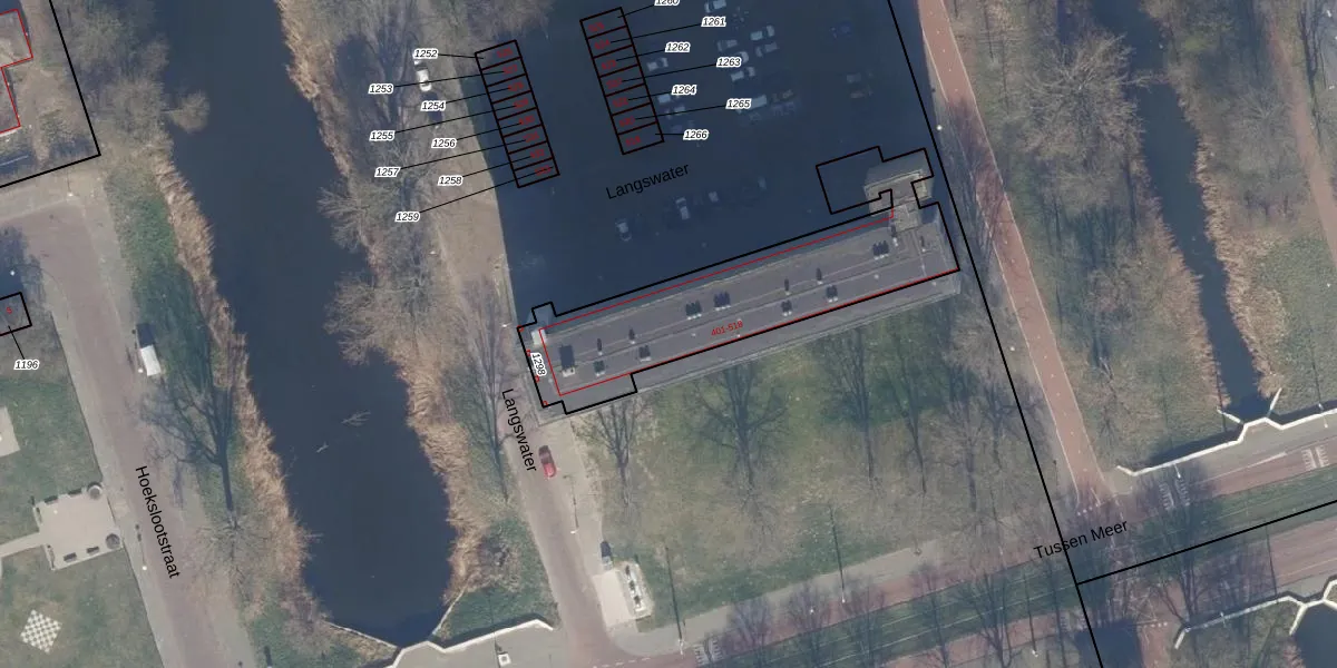 Het perceel waarop Langswater 442 staat heeft een oppervlakte van 916 m². Dit is een groot perceel. De perceeloppervlakte wordt geregistreerd door het Kadaster. Gedetailleerde informatie over de maten van dit perceel kunt u vinden in het rapport Kadastrale kaart met maatvoering van Langswater 442.