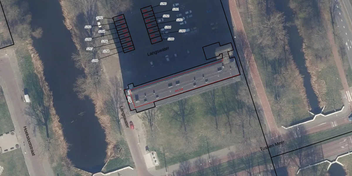 Het perceel waarop Langswater 455 staat heeft een oppervlakte van 916 m². Dit is een groot perceel. De perceeloppervlakte wordt geregistreerd door het Kadaster. Gedetailleerde informatie over de maten van dit perceel kunt u vinden in het rapport Kadastrale kaart met maatvoering van Langswater 455.