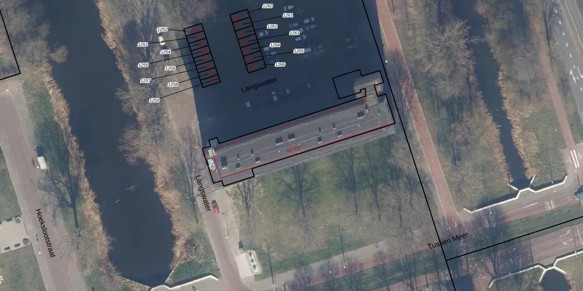 Het perceel waarop Langswater 457 staat heeft een oppervlakte van 916 m². Dit is een groot perceel. De perceeloppervlakte wordt geregistreerd door het Kadaster. Gedetailleerde informatie over de maten van dit perceel kunt u vinden in het rapport Kadastrale kaart met maatvoering van Langswater 457.