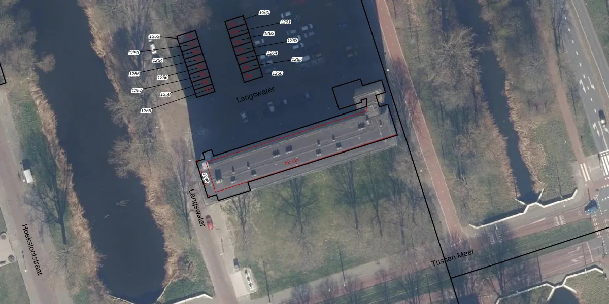 Het perceel waarop Langswater 467 staat heeft een oppervlakte van 916 m². Dit is een groot perceel. De perceeloppervlakte wordt geregistreerd door het Kadaster. Gedetailleerde informatie over de maten van dit perceel kunt u vinden in het rapport Kadastrale kaart met maatvoering van Langswater 467.