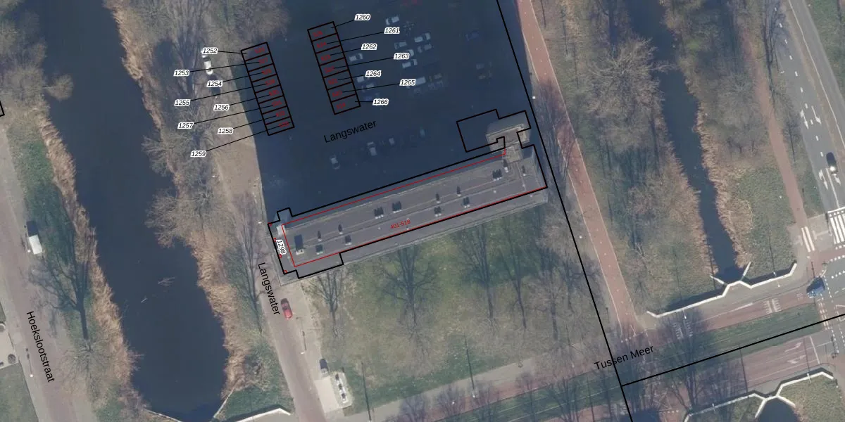 Het perceel waarop Langswater 469 staat heeft een oppervlakte van 916 m². Dit is een groot perceel. De perceeloppervlakte wordt geregistreerd door het Kadaster. Gedetailleerde informatie over de maten van dit perceel kunt u vinden in het rapport Kadastrale kaart met maatvoering van Langswater 469.