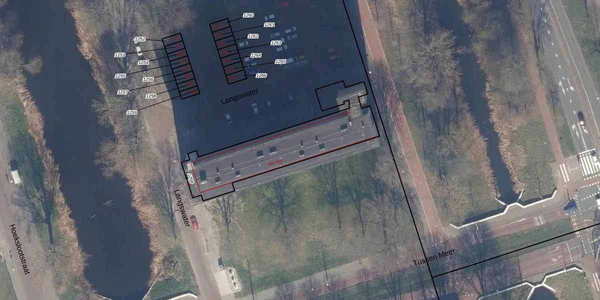 Het perceel waarop Langswater 475 staat heeft een oppervlakte van 916 m². Dit is een groot perceel. De perceeloppervlakte wordt geregistreerd door het Kadaster. Gedetailleerde informatie over de maten van dit perceel kunt u vinden in het rapport Kadastrale kaart met maatvoering van Langswater 475.