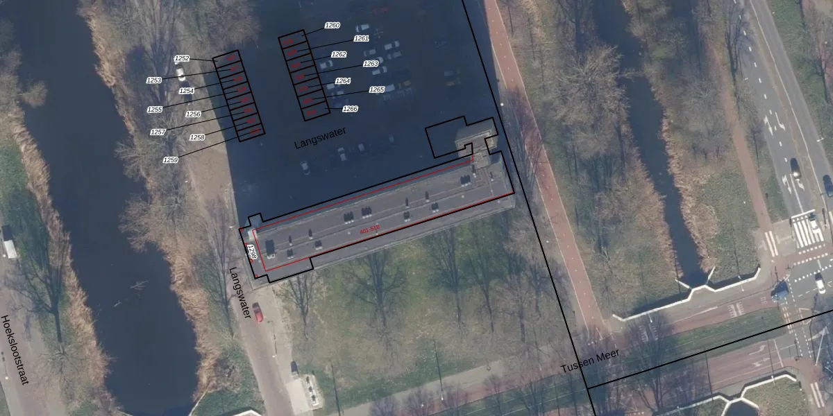 Het perceel waarop Langswater 480 staat heeft een oppervlakte van 916 m². Dit is een groot perceel. De perceeloppervlakte wordt geregistreerd door het Kadaster. Gedetailleerde informatie over de maten van dit perceel kunt u vinden in het rapport Kadastrale kaart met maatvoering van Langswater 480.