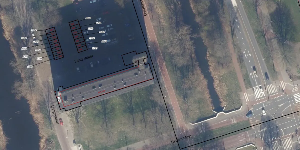 Het perceel waarop Langswater 518 staat heeft een oppervlakte van 916 m². Dit is een groot perceel. De perceeloppervlakte wordt geregistreerd door het Kadaster. Gedetailleerde informatie over de maten van dit perceel kunt u vinden in het rapport Kadastrale kaart met maatvoering van Langswater 518.