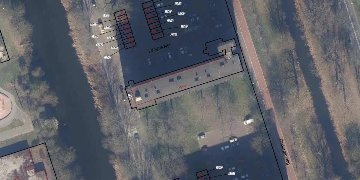 Het perceel waarop Langswater 547 staat heeft een oppervlakte van 916 m². Dit is een groot perceel. De perceeloppervlakte wordt geregistreerd door het Kadaster. Gedetailleerde informatie over de maten van dit perceel kunt u vinden in het rapport Kadastrale kaart met maatvoering van Langswater 547.