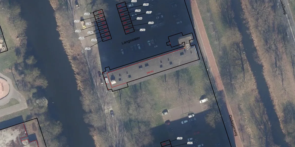 Het perceel waarop Langswater 557 staat heeft een oppervlakte van 916 m². Dit is een groot perceel. De perceeloppervlakte wordt geregistreerd door het Kadaster. Gedetailleerde informatie over de maten van dit perceel kunt u vinden in het rapport Kadastrale kaart met maatvoering van Langswater 557.