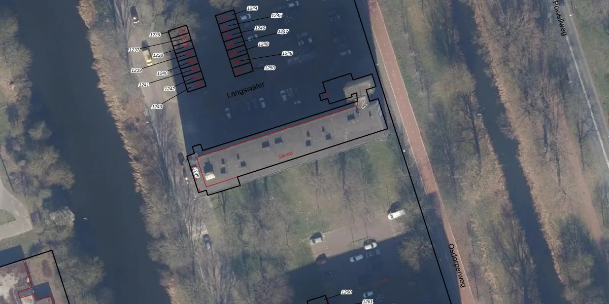Het perceel waarop Langswater 648 staat heeft een oppervlakte van 916 m². Dit is een groot perceel. De perceeloppervlakte wordt geregistreerd door het Kadaster. Gedetailleerde informatie over de maten van dit perceel kunt u vinden in het rapport Kadastrale kaart met maatvoering van Langswater 648.