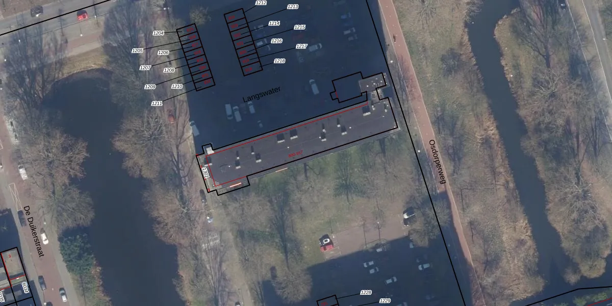 Het perceel waarop Langswater 875 staat heeft een oppervlakte van 916 m². Dit is een groot perceel. De perceeloppervlakte wordt geregistreerd door het Kadaster. Gedetailleerde informatie over de maten van dit perceel kunt u vinden in het rapport Kadastrale kaart met maatvoering van Langswater 875.