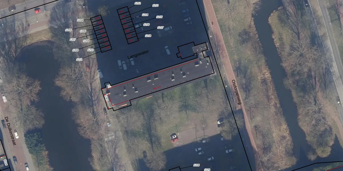 Het perceel waarop Langswater 915 staat heeft een oppervlakte van 916 m². Dit is een groot perceel. De perceeloppervlakte wordt geregistreerd door het Kadaster. Gedetailleerde informatie over de maten van dit perceel kunt u vinden in het rapport Kadastrale kaart met maatvoering van Langswater 915.
