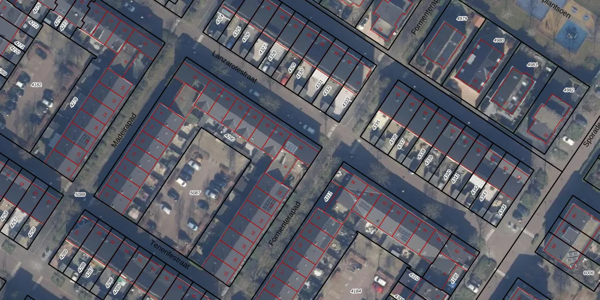 Het perceel waarop Lanzarotestraat 34 staat heeft een oppervlakte van 2260 m². Dit is een zeer groot perceel. De perceeloppervlakte wordt geregistreerd door het Kadaster. Gedetailleerde informatie over de maten van dit perceel kunt u vinden in het rapport Kadastrale kaart met maatvoering van Lanzarotestraat 34.
