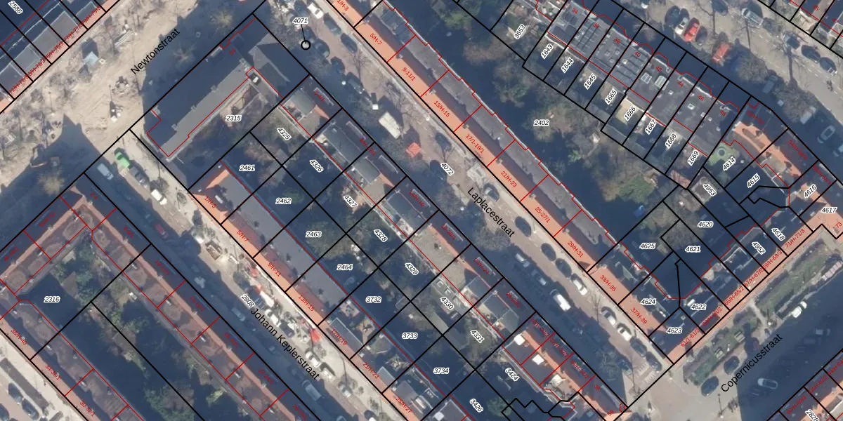Laplacestraat 16 is gelegen op kadastraal perceel WTG02B4328. Deze kadastrale aanduiding is uniek en wordt gebruikt door het Kadaster om eigendomsrechten en andere zakelijke rechten vast te leggen. Het perceel maakt onderdeel uit van de kadastrale gemeente Watergraafsmeer.
