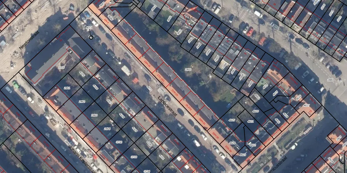 Laplacestraat 21-H is gelegen op kadastraal perceel WTG02B2402. Deze kadastrale aanduiding is uniek en wordt gebruikt door het Kadaster om eigendomsrechten en andere zakelijke rechten vast te leggen. Het perceel maakt onderdeel uit van de kadastrale gemeente Watergraafsmeer.