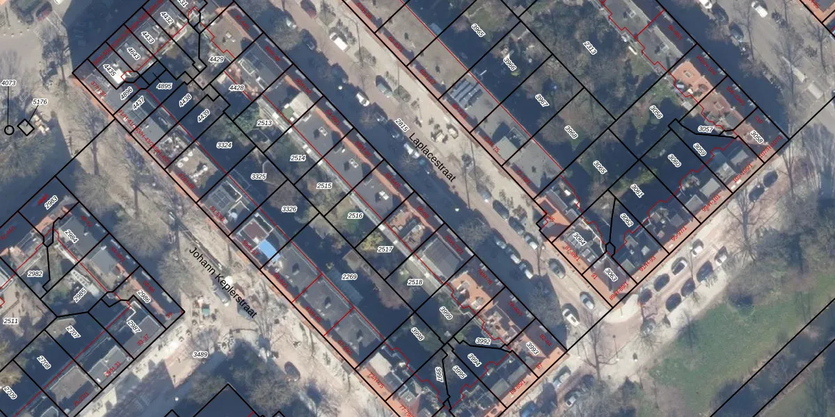 Laplacestraat 66 is gelegen op kadastraal perceel WTG02B2517. Deze kadastrale aanduiding is uniek en wordt gebruikt door het Kadaster om eigendomsrechten en andere zakelijke rechten vast te leggen. Het perceel maakt onderdeel uit van de kadastrale gemeente Watergraafsmeer.