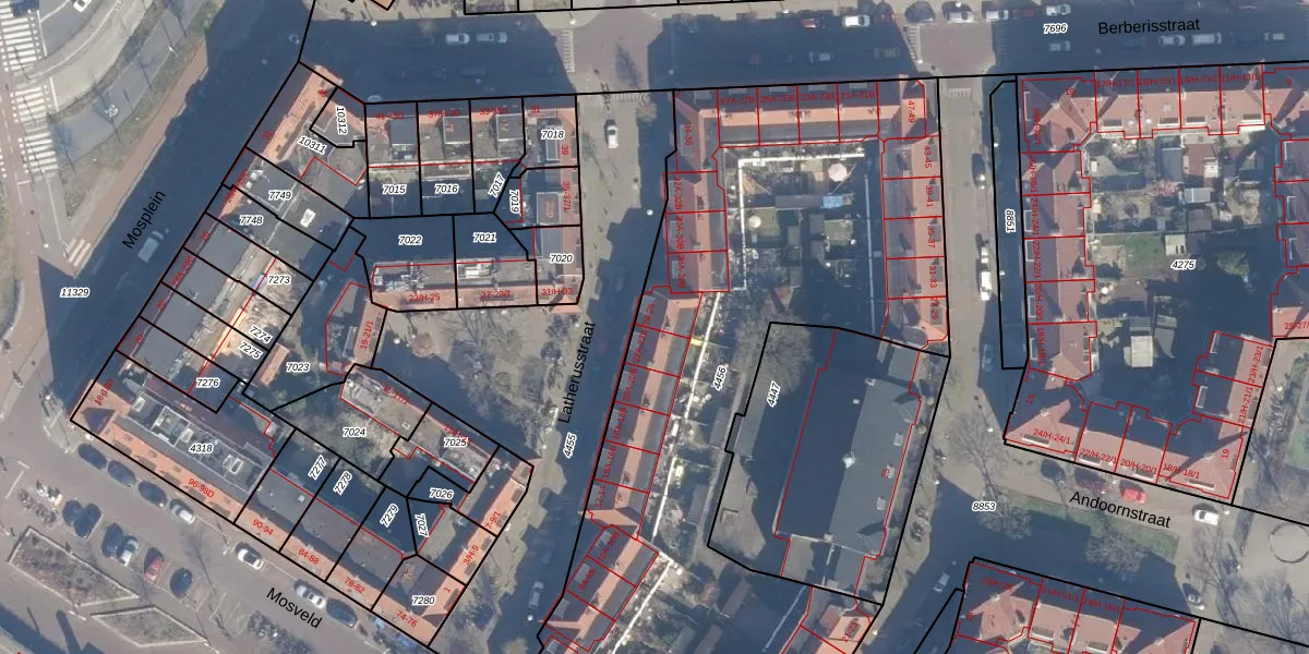 Latherusstraat 24 is gelegen op kadastraal perceel ASD07K4456. Deze kadastrale aanduiding is uniek en wordt gebruikt door het Kadaster om eigendomsrechten en andere zakelijke rechten vast te leggen. Het perceel maakt onderdeel uit van de kadastrale gemeente Amsterdam.
