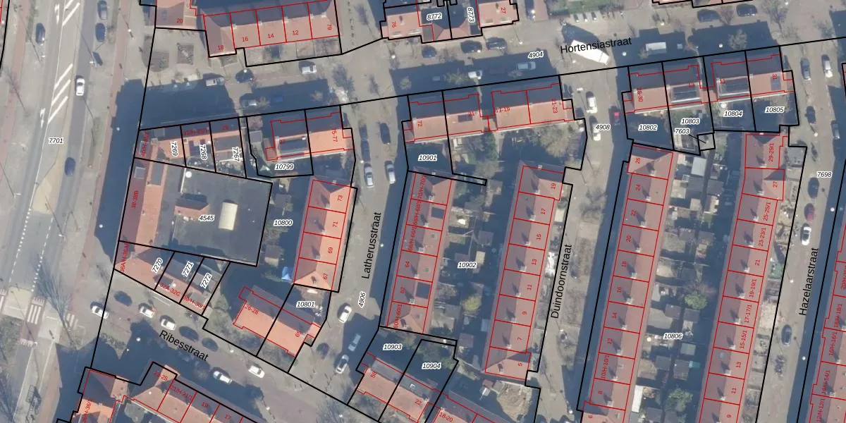 Het perceel waarop Latherusstraat 68-1 staat heeft een oppervlakte van 2757 m². Dit is een zeer groot perceel. De perceeloppervlakte wordt geregistreerd door het Kadaster. Gedetailleerde informatie over de maten van dit perceel kunt u vinden in het rapport Kadastrale kaart met maatvoering van Latherusstraat 68-1.