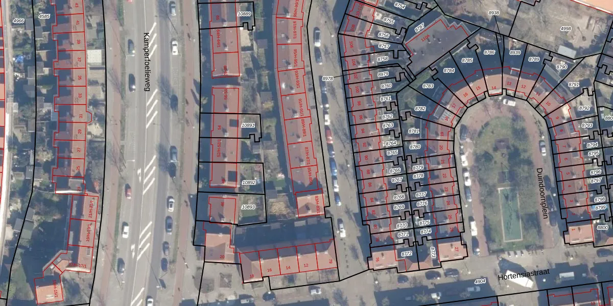 Het perceel waarop Latherusstraat 87-1 staat heeft een oppervlakte van 3447 m². Dit is een zeer groot perceel. De perceeloppervlakte wordt geregistreerd door het Kadaster. Gedetailleerde informatie over de maten van dit perceel kunt u vinden in het rapport Kadastrale kaart met maatvoering van Latherusstraat 87-1.