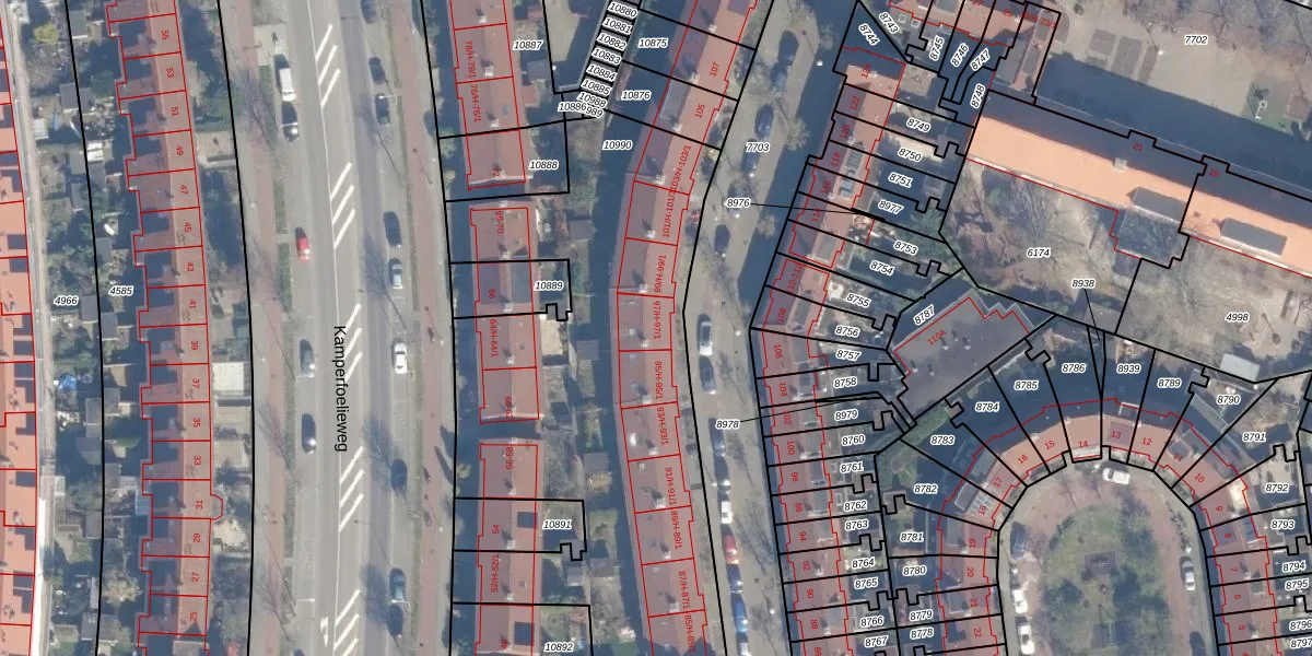 Het perceel waarop Latherusstraat 97-1 staat heeft een oppervlakte van 3447 m². Dit is een zeer groot perceel. De perceeloppervlakte wordt geregistreerd door het Kadaster. Gedetailleerde informatie over de maten van dit perceel kunt u vinden in het rapport Kadastrale kaart met maatvoering van Latherusstraat 97-1.