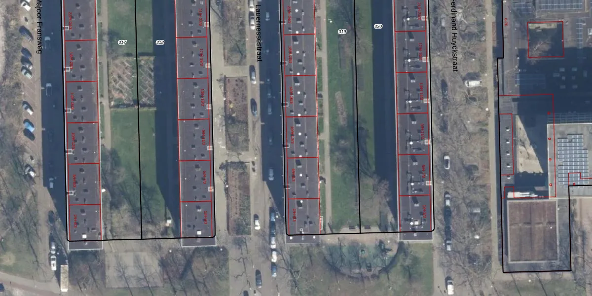 Het perceel waarop Lauernessestraat 10-2 staat heeft een oppervlakte van 3519 m². Dit is een zeer groot perceel. De perceeloppervlakte wordt geregistreerd door het Kadaster. Gedetailleerde informatie over de maten van dit perceel kunt u vinden in het rapport Kadastrale kaart met maatvoering van Lauernessestraat 10-2.
