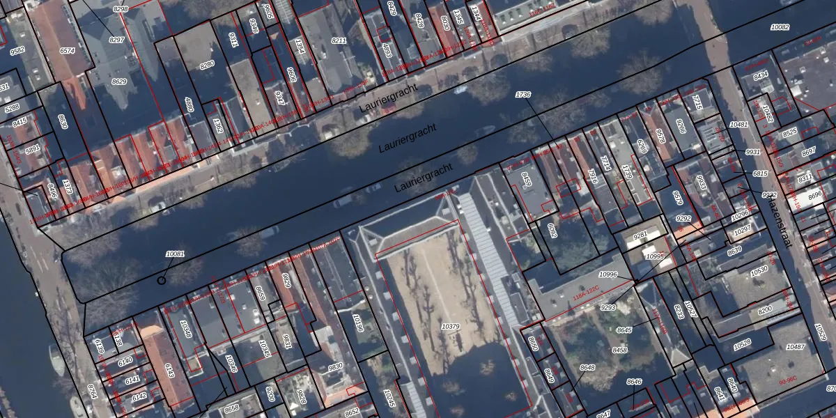 Het perceel waarop Lauriergracht 101-L staat heeft een oppervlakte van 2815 m². Dit is een zeer groot perceel. De perceeloppervlakte wordt geregistreerd door het Kadaster. Gedetailleerde informatie over de maten van dit perceel kunt u vinden in het rapport Kadastrale kaart met maatvoering van Lauriergracht 101-L.