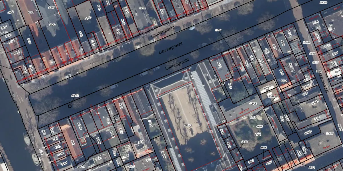 Het perceel waarop Lauriergracht 103-D staat heeft een oppervlakte van 2815 m². Dit is een zeer groot perceel. De perceeloppervlakte wordt geregistreerd door het Kadaster. Gedetailleerde informatie over de maten van dit perceel kunt u vinden in het rapport Kadastrale kaart met maatvoering van Lauriergracht 103-D.